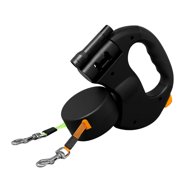 - Sotkeutumaton rakenne helpottaa ulkoilua: hihna on varustettu pyörivällä akselilla. Koirien juostessa voit itse vain ihastella